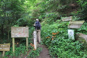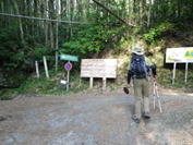 4、水無登山口 8時05分 駐車場の奥左手から登山道が伸びている。 |