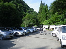 道路沿いのトイレのある広場 13時12分 下山完了。広場は車で満杯になっていた。 |