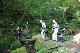 アンの滝分岐 8時35分 清涼感ある沢沿いを上って行く。 |