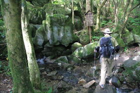 こうぞう岩(水無の湧水) 8時25分 下山時に汲んで帰ることにする。 |