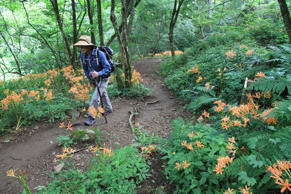 登山道の両サイドにオオキツネノカミソリがずっと咲いている