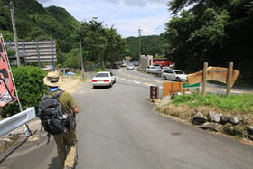 駐車場は相変わらず満車状態 12時09分 Nさんとはこの先の林道入り口でお別れです。 |