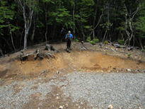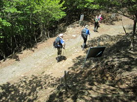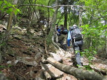 林道からまた急登 8時47分 笈吊峠まであと460m。まだまだ・・・。 |