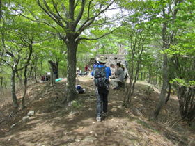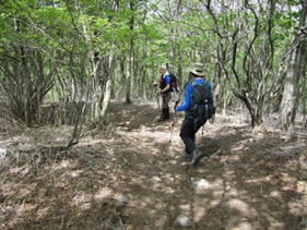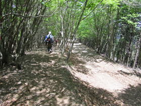 大竿峠を出発 11時06分 徐々に上りとなり、林の中を歩いて行く。 |