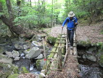 古い木の橋 8時01分 歩き難いので慎重に渡る。おっとっと・・・。 |