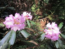 ロープを手に進む 8時21分 ツクシシャクナゲのお出迎え。嬉しい。 |