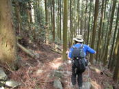 13、鬼の石段・鬼の鐙(あぶみ) 14時03分 かなり長くて急な石段(850段)が続く。 |