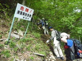 3、ウグイス谷 8時15分 急登を上り、かなり汗をかいてきた。 |
