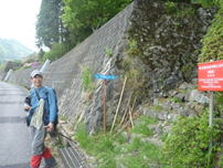 経読林道に出会う 8時30分 ここから林道を右に進んで行く。 |