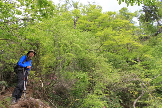 4、笈吊(おいつり)峠 9時07分 シャクナゲがチラホラ咲いている。 |
