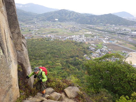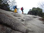 石船山の岩峰に沿って慎重に上って行く 9時31分 新幹線が通過する音がここまで響く