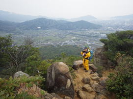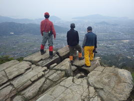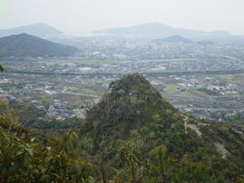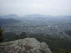 右田ヶ岳山頂より防府市内を望む。雨も上がり、ゆっくりと腰を下ろしてランチタイム。