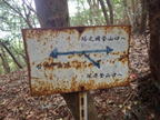 分岐を左の木段へ 12時26分 錆びついた分岐看板を見ると、右は「塚原登山口へ」、左は「塔之岡登山口へ」と書いてある。我々は左に伸びる木段を上る。 錆びついて見難い |
