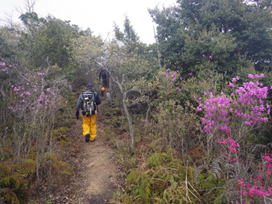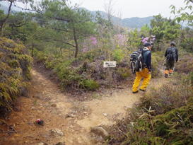 今年最初の県外登山。目指すは山口県防府市の右田ヶ岳である。この右田ヶ岳はこれまで高速道路や新幹線の車窓から何度も眺めていたが、見るからに岩がゴツゴツでとても印象に残る山だった。実際登るのは初めてである。今朝は雨の為山行きが危ぶまれたが、T師匠の大号令でベテランYさんと共に三人でスタート! ミツバツツジもまだまだ咲いていて充実した山行きとなった。 |