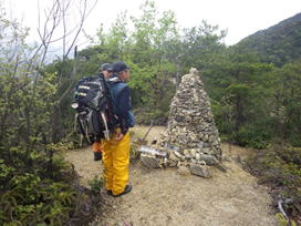 葉椰詩(はやし?)の山小屋 12時43分 今にも崩れそうな手作りの山小屋に出会う。この山域の常連さんが作ったのだろうか?急な雨の際には都合が良さそうだが・・。 ネームプレート |