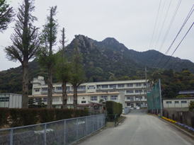 右田小学校 14時14分 庭の綺麗な民家を見ながら、ようやく右田小学校に辿り着いた。校舎の後ろには、今登ってきた右田ヶ岳が堂々と聳えていた。 駐車場へ |