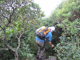 7合目より背丈の低い樹林帯を上る 8時29分 |
