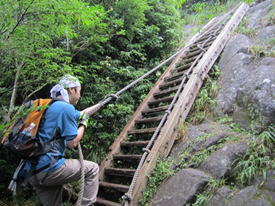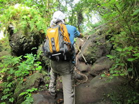 ロープで岩場を上る 8時39分 |
