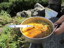 昼食 10時14分 山頂で食べるカレーライスはメチャ旨い。 |