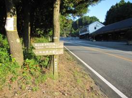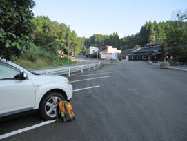 1、嘉麻峠 小石原民芸村登山口 6時51分 早朝5時起床。車を走らせ登山口に到着。 以前ドライブの途中でこの小石原民芸村に立ち寄ったことがあったが、まさかここの道を挟んで真向いに登山口があるとは思わなかった。 しかし、この小石原民芸村は現在、営業をしてない様子だった。広い駐車場は閉鎖されていなかったので、一番奥のスペースを借用させてもらった。 |