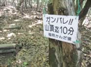 山頂までの最後の登り 8時59分 「山頂迄10分」のこの表示で元気が出る。 |