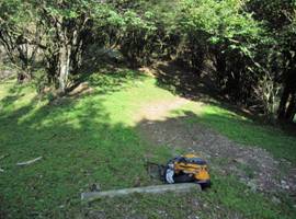 7、古処山中腹の駐車場に到着 13時08分 ここで思わぬハプニング!なんと、いつも使用しているデジカメが突然壊れてしまった。撮影が出来ない。冷静さを失い、あたふたとしながら駐車場をまっすぐ進むと舗装道路に出た。そして、そのまま下って行った。これが間違いだったのだろう。どうやら登山道をはずれてしまったようだ。「おかしいなあ」と思いつつ、引き返すことなく車道を下った。 |
