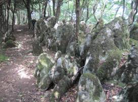 石灰岩群 11時19分 下っていくと、登山道の横に奇妙な岩が現れた。