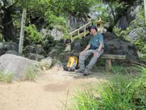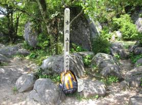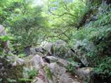 先程の分岐に戻る 11時52分 古処山山頂まであと300m。 しかし、ここから岩場連続の最後の登りとなる。 すでに11キロほど歩いているので足が言うことをきかない。情けない。 よく考えると、ここまでで出会った登山客は単独行が一人と、2グループだけだった。 やはり今日は暑いので登山を敬遠している方が多いいのだと思った。 |
