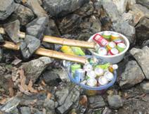 6、水舟 12時35分 水場に到着。チョロチョロと申し訳なさそうに水が出ていた。ここから先の下り登山道は水害のせいなのか、土砂崩れあとの荒れた道となる。 10年前に登ったことはあまり覚えていないが、こんな状態ではなかったはずだ。 |
