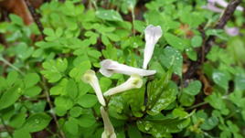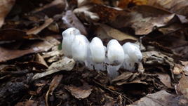 ギンリョウソウ(銀竜草) 落ち葉の中から顔を出す5人兄弟