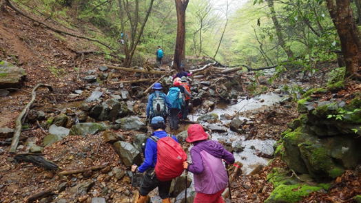 沢を渡渉 9時35分 沢に下りまた上る |