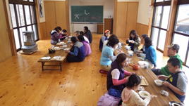 センターの中でだご汁の昼食 12時25分 |