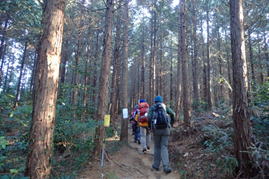 檜(ヒノキ)の植林帯を抜ける 8時45分 |