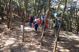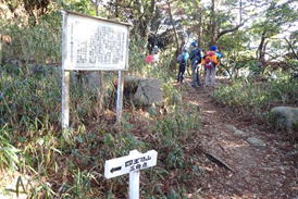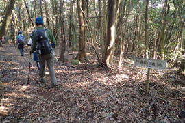| 緩やかなアップダウンを繰り返し歩いていると「勝山城・急坂」の表示が目に入った 10時58分 |
