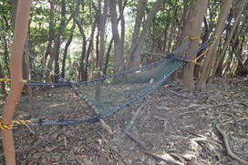 15、平畑山山頂 12時40分 246m 登山道に突然ハンモックが現れた!と思ったら、そこは平畑山の山頂だった。 山頂らしくない |