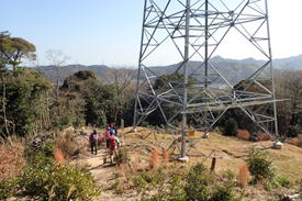 鉄塔の下を歩くと、勝山登山口が現れた。登山口から勝山頂上までのコースタイムは40分。 |