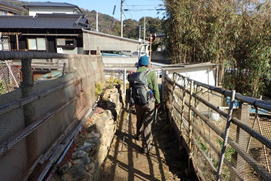 「火の用心」「権現山口→」の表示から神社側に5m程歩いた所に、右手へ入る細い道がある。 勝山への分岐に表示がなかったので、是非ここに「勝山へ」という表示が欲しいと思った。 |