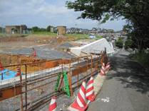 小森江浄水場(工事中) 10時04分 矢筈山を下りたところに小森江浄水場がある。町名は羽山町となっている。浄水場を過ぎた四つ角から左折して寺内町方面を目指す。 |