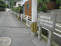 民家の横を上り、いよいよ登山道 10時35分 舗装道路も終わり、山の方へ入っていく。 しかし、やぶ蚊がたくさんいて落ち着いて休憩ができず、すぐに戸の上山を目指してスタートした。 最初はコンクリートの長い階段だった。 |