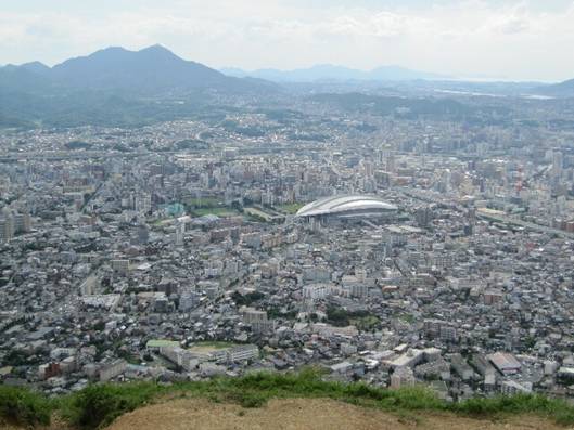 足立山山頂からみた小倉市街(左下にメディアドームの銀屋根が見える)
