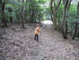 高蔵山森林公園への分岐 14時09分 実はこの草に覆われた標識を見落としてしまい、その先の分かれ道をどちらでもいいのだろうと勝手に判断して、左に行ってしまった。 |