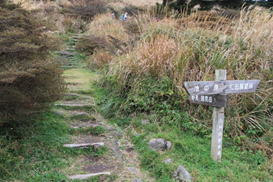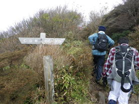 5、国見別れ 12時31分 山頂から12分で国見別れまで下って来た。 注意看板 |