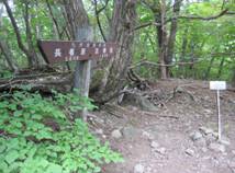 雨ヶ池越えコース登山口 9時43分 タデ原(湿原)を終え、ここから樹林の中を歩きます。入山届けは出していません。