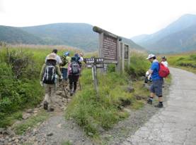 大船山登山道入口 12時36分 ここから本日の目標、大船山へ。いざ勝負。 |