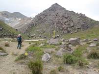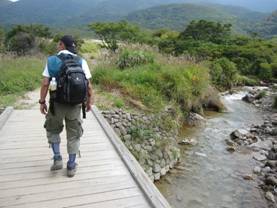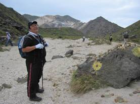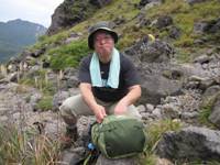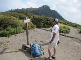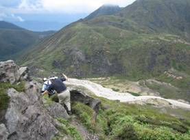 三俣山を下山 10時00分 また来た道を戻ります。N村君「ハイ ポーズ」 |