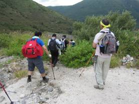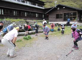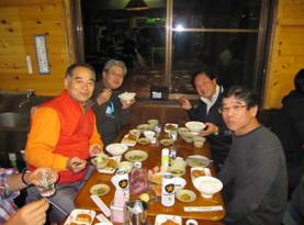 | 今回は二人の初参加もあり、賑やかな山登りとなりました。 皆さん相変わらず元気一杯です。さてさて二日間の結果はいかに・・・。 |