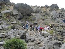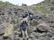 11、ガレ場 10時32分 大小の岩場を慎重に黄色のマーカーに沿って歩きます。走ってはいけませんよ!