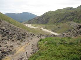 土石流の爪あとを横切る。 10時37分 自然の力はすごい。想像するとゾッとする。