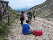 ガレ場に苦戦 8時36分 遠くでみんなが待ってくれている。ガンバレ! |