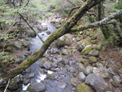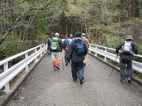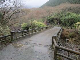 橋を渡る 10時45分 橋を渡ってすぐに暮雨の滝コースに出会う。 ![]() |